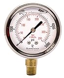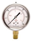 2-1/2" Oil Filled Pressure Gauge - Stainless Steel Case, Brass, 1/4" NPT, Lower Mount Connection, 0-600PSI