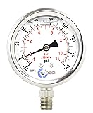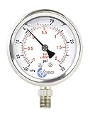 CARBO Instruments 1.5" Pressure Gauge, Stainless Steel Case, Liquid Filled, Vacuum -30Hg/+60psi Compound, Lower Mount 1/8" NPT Reliable and dampen Pulsation & Vibration Oil, Water, Air, Compressor, Hydraulics, HVAC, Gaseous & Liquid media that are not highly viscous or crystallizing and not corrosive or oxidizing to copper alloy parts