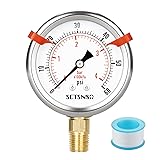 This pressure gauge is built with brass and stainless steel parts to measure pressure in liquids and gases that aren't corrosive, like coolant, CO2, water, oil, air, and fuel pressure tests. It's perfect for use with things like portable air compressors, water pumps, well pumps, CO2 tanks, pipes, espresso machines, and more.