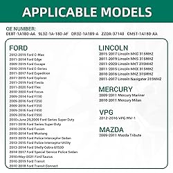 Interchange Part Number: DE8T-1A180-AA, 9L3Z-1A189-A, DE8T-1A150-AA, 9L3T-1A180-BB, CM5T1A180AA, 9L3Z1A189A, ZZDA37140 TPMS-12, TPMS12, 9L3T-1A180-AE, CM5T-1A180-AA Package:4pcs Tire Pressure Monitoring Sensors Compatibility: 2013-2015 Ford C-Max 2010-2016 Ford E-150 2010-2016 Ford E-250 2010-2016 Ford E-350 Super Duty 2010-2016 Ford E-450 Super Duty 2011-2015 Ford Edge 2009-2015 Ford Escape 2011-2015 Ford Expedition 2011-2015 Ford Explorer 2009-2014 Ford F-150 2010-2016 Ford F-250 Super Duty 2010-2016 Ford F-350 Super Duty 2010-2015 Ford F-450 Super Duty 2010-2015 Ford F-550 Super Duty 2011-2015 Ford Fiesta 2011-2015 Ford Flex 2010-2015 Ford Focus 2010-2016 Ford Fusion 2010-2014 Ford Mustang 2011-2015 Ford Taurus 2010-2015 Ford Transit Connect 2015 Ford Transit-150 2015 Ford Transit-250 2015 Ford Transit-350 2015 Ford Transit-350 HD 2015 Lincoln MKC 2011-2015 Lincoln MKS 2011-2015 Lincoln MKT 2011-2015 Lincoln MKX 2010-2016 Lincoln MKZ 2011-2015 Lincoln Navigator 2009-2011 Mercury Mariner 2010-2011 Mercury Milan Note:Please check the picture and the part number carefully to make sure that you bought the right sensor for your car.The only way to be 100% sure that the part will fit your vehicle is to check your original part,You can also email us before purchasing, we will check for you and reply soon within 24 hours.
