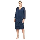 S.L. Fashions Women's Plus Mother of The Bride Tiered Jacket Dress with Shoulder Embellishment, Concrete, 18