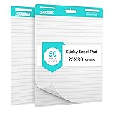 SHARBDA Lined Sticky Easel Pad, 25 in x 30 in,Flip Chart Paper,Sticky Chart Paper for Teachers, Large Self-Stick Easel Paper,Super Sticky & Bleed-Resistant,30 Sheets/Pad,4 Pads
