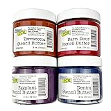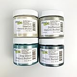 The Crafters Workshop Stencil Butter set Coastal includes one 2-oz jar of each stencil butter color Oyster, Beach Grass, Ocean Mist and Dune. Easy to use stencil butter has a shimmer and shine and helps create and decorate greeting cards, signs, scrapbooks, journals, mixed-media, collages, paper arts, home décor, or any DIY craft or hobby project. Stencil butters are deliciously spreadable with a palette knife, brush or fingers. It has the body of a soft modeling paste that holds its peaks and valleys for texture and interest and cleans easily with water (be sure to rinse your tools immediately after use or allow to soak in water until ready to wash). Perfect for spreading through TCW stencils, finger-painting, brush-painting and much more. These colors blend beautifully with each other as well as with all of our Mixed Media Products! Stencil butter may be added to other mediums and powders such as modeling paste, gesso and coordinate beautifully with our ColorSparx Powders to create your own custom unique colors and textures. Stencil Butters are great to use on watercolor paper, mixed media board, canvas, wood and dry porous surfaces. Dries in 15-30 minutes.