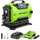 DIGITAL PRESSURE DISPLAY WITH AUTOMATIC SHUT OFF: With Greenworks portable tire inflator, you don't need to worry about over-inflation. Set desired PSI and the unit will shutoff automatically once it is reached. The digital pressure gauge displays the current pressure in 1 PSI increments.