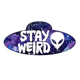 Dark Spark Decals Stay Weird Alien Head Spaceship - 4 Inch Full Color Vinyl Decal for Indoor or Outdoor use, Cars, Laptops, Décor, Windows, and More