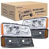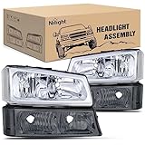 Nilight Headlight Assembly 2004-2006 Avalanche 2003-2006 Silverado 1500 1500HD 2500 2500HD 3500 Headlights Bumper Lamp Set Replacement,Chrome Housing Amber Reflector