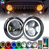 【HIGH-PERFORMANCE LED CHIP】﹣DOT Approved. Newest Fantastic Design 7" LED Headlights w/ Angel Eyes Halo are more Brighter than Original Halogen and HID. 9600 LM / Kit; Over 50000 Hours Lifespan.