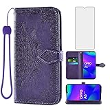 Compatible with OPPO A9 2020/A5 2020/A11/A11x Wallet Case and Tempered Glass Screen Protector Leather Mandala Flower Flip Cover Credit Card Holder Cell Accessories Phone Cases for 5A 9A Women Men Gray