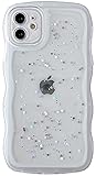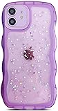 Qokey for iPhone 13 Mini Case 5.4" Curly Wave Edge Design Transparent Bling Glitter Star Shiny Case Cute Clear Transparent Full Protection Soft TPU Shockproof Phone Cover for Women Girls, Pink