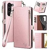 XcaseBar for Samsung Galaxy S23 5G Wallet case with Zipper 【RFID Blocking】 Credit Card Holder, Flip Folio Book PU Leather Phone case Shockproof Cover Women Men for Samsung S23 case Blue Green