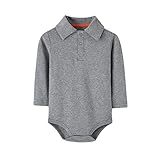 Teach Leanbh Baby Boys Pure Color Cotton Short Long Sleeve Polo Bodysuit 3-24 Months (Grey/Long Sleeve, 3 Months)
