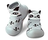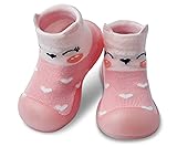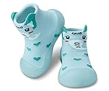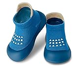 BREATHABLE DESIGN - The upper part of the baby walking shoes, knitted with high quality cotton material, allows your child's feet to breathe. Your toddler can wear our baby sock shoes comfortably all day long. There won’t be any moisture. Our baby sneakers keep warm in winter and cool in summer. It can be used comfortably in all seasons.