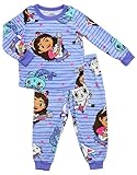 Set up your little one for fun adventures by dressing them in the pieces from this Gabby's Dollhouse fleece pajama set for girls. This outfit set includes a long sleeve top and pants, both crafted from a soft and cozy fleece fabric. The set features an all over print of Gabby Girl on the guitar with her best friend, Pandy along with MerCat on a purple stripe background. The cuffed ankles and wrists and fabric covered elastic waistband ensure a cozy custom fit.
