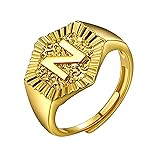 Gold Rings- this chic signet ring is unisex fashion, top medal part is nor too big like a masculine men's ring or too thin just for a woman wear; wear this name ring is a way to tell her how much you love her.