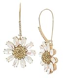 TRENDY EARRINGS : These dangle earrings feature a delicate long ear wire with iridescent stones, paired with a colorful pink rose drop. Rose is adorned with glistening mixed stone accents. Hand crafted from polished gold-tone metal, glass and enamel