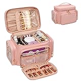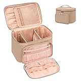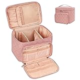 ★Large Capacity Travel Cosmetic Bag - Size:10.5 x 7.5 x 7.5 inches; This makeup bag includes 2 adjustable padded dividers, making it easy to organize and manage your cosmetics, personal care products including small hair dryers placed vertically and safely. Main compartment includes 3 pockets and 8 straps to fit your lipstick, mirror, or makeup tools.