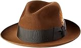 Description The Stetson Temple is a Royal DeLuxe quality fur felt hat with a classic shape. This hat features a dimensional brim with 2 3/8" on the sides and 2 5/8" in front and back, a 4 1/2" centerdent crown, genuine roan sweatband, interior lining, and removable feather and pin. Always a bestseller, comes with a Stetson hat box. Made in the USA.