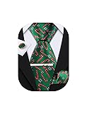 Barry.Wang Mens Christmas Tie Set Maroon Green Socks Xmas Holiday Neckties Woven Pocket Square Cufflinks Party Vacation Festival Gift Vacation