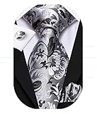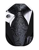 Hi-Tie Silk Black and Pink Paisley Necktie and Pocket Square Cufflinks Set for Groom