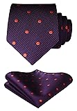 HISDERN Mens Ties Classic Black Tie and Pocket Square Polka Dot Woven Silk Necktie Handkerchief Formal Business Neckties for Men Wedding Party