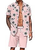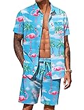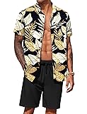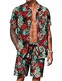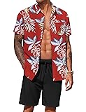 Casual Floral Outfits -- Hawaiian Button down shirt, short sleeve, spread collar; casul shorts with 2 side pockets , elastic waist drawstring.A simple and classic combination of a shirt and shorts set that saves you time choosing a pairing