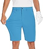 【Performance Material】: Mens casual shorts are made of Polyester blend with soft, UPF 50+, easy care, 4 way stretch, lightweight, dry fit, breathable fabric have moisture-wicking technology can moves perspiration away from the body to provide a dry fit that's comfortable for all day wear.