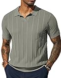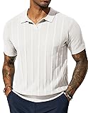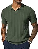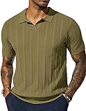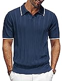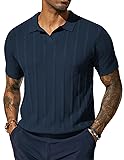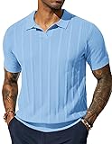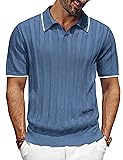 FEATURES: Knit polo shirts, v neck, textured, solid color, stretchy fabric, short sleeve, classic fit