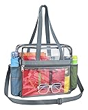 【Comfort Meets Function】- The large front pocket + 2 side mesh pockets (for water bottles/umbrellas) make this clear tote bag perfect for all day use.