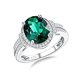 OVAL ENGAGEMENT RING - This gemstone ring is set by hand with a 14mm*10mm oval-cut created emerald in the center and enhances the overall beauty and size of the center stone, creating a dazzling and luxurious look.