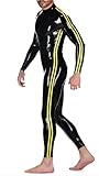 Back zipper from the back of neck along the back across the crotch to the abdomen.