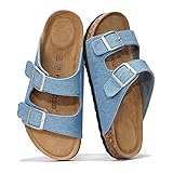 𝗖𝗼𝗺𝗳𝗼𝗿𝘁𝗮𝗯𝗹𝗲 𝗙𝗶𝘁: The adjustable two straps of these women's flat sandals provide a secure and custom fit, enhancing comfort for all-day wear. They feature adjustable two straps for a personalized fit and natural cork foot bed that provides exceptional support.