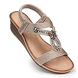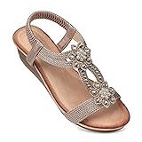 【Design】Wedge sandals for women dressy summer, low wedge heel sandals, open toe Wedge sandals, womens sandals, flower rhinestone wedge heeled sandals, summer sandals women. Comfy and skin-friendly insole is made of memory foam for all day wearing. Elastic ankle strap fits well various foot shapes, easy slip on/off, wedge heeled sandals, slip-on summer Wedge sandals, womens wedge orthopedic sandals
