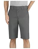 CLASSIC WORKWEAR: This flat-front short sits slightly below waist with a traditional fit in seat & thigh & a straight leg. It's made of durable poly-cotton twill that resists wrinkles & spills & features our signature tunnel belt loops for extra support