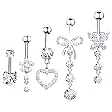 Belly Button Ring Set: 1 belly button ring pack includes 5 pieces belly button rings gold, 1 piece internally threaded double heart purple cubic zirconia belly ring gold, 1 piece purple cz flower gold belly button ring dangle, 1 piece purple cz paved heart dangle belly button ring gold, 1 piece purple cz bow belly button ring gold dangle and 1 piece cz butterfly belly button ring dangle gold, so many cute gold dangle belly button rings for women to choose from and match for your outfit