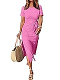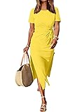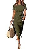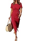 • Features - Women's summer dress, crew neck, short sleeve, tie waist, slim, slit.This women's maxi dress perfect for daily wear, work, office, business.