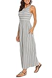 Womens Sleeveless Striped Summer Casual Long Maxi Dress with Pockets This adorable striped maxi dress is such a classic for spring and summer fun! You will fall in love with the beautiful black and white stripes - it's such a versatile choice for any occasion! The material is soft and stretchy, features a classic scoop neck and cute sleeveless, plus practical pockets on each side for a must-have style! It's so easy to dress this darling maxi dress up or down for casual, party, beach, work and Holiday Style! Wearing it with wedges and a sparkling necklace for a dazzling look! Size Chart: (inch/cm) S (US 4-6) Bust: 34.6"/88cm; Length:54.3"/138cm M (US 8-10) Bust: 37.0"/94cm; Length:55"/140cm L (US 12-14)Bust: 43.3"/100cm; Length:55.5"/141cm XL (US 16)Bust: 41.7"/106cm; Length:55.9"/142cm XXL (US 18)Bust: 44.8"/114cm; Length:56.2"/143cm