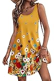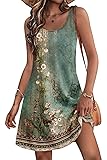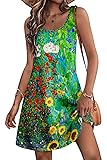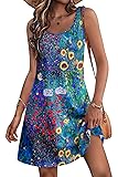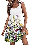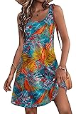 Designs: Sleeveless, scoop neck, vibrant floral print, graphic, a line cut, side pockets, casual loose style, lovely boho beach vibe
