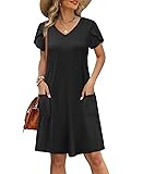 FEATURES:It features casual style,cute v neck,Petal Short Sleeve and short length.Two pockets can provide extra storage for carrying small items.