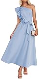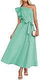 One shoulder dress with sleeveless, ruffle detail, empire waist, side zipper closure, maxi length and solid color is stylish, elegant and sexy. Just team with earrings, necklace, heels for a seriously stylish look.