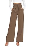 The Slacks for Women Feature with High Waisted with Belt Lace Up and Stretchy Ruffle at the back of the waist,Wide Straight Leg,Solid Color