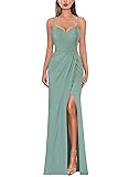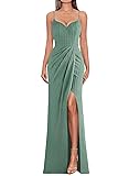 Style: Adjustable Spaghetti Strap with Beads on; Sweetheart Neckline; Sexy Low Back; Ruched Waist detail; Front high slit; Mermaid silhouette; Maxi Length; A Concealed Back Zipper