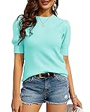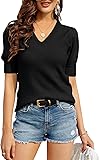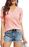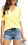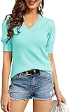 ✿Easy Collocation: Simple short sleeve knitted tops can easily pair with skinny jeans,leggings,skirts,boots,high heels,or also wear alone to make a stylish,elegant,casual outdoor image.