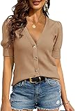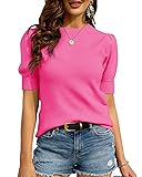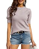 ✿Basic Design: Vintage short sleeve knitwear sweater with balloon sleeves,ribbed hem,crew neck,pure color,slim waist design,can make you look unique,cute and charm.