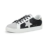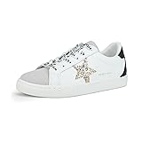 Vintage Havana white leather (synthetic) low top sneakers for woman: These white tennis shoes showcase a black (synthetic) suede star, snakeskin detailing on the heel, and a white outsole. Perfect for adding a bit of flair to any casual outfit!