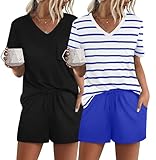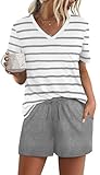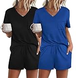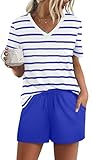 • FEATURE --- The package including 1 x short sleeve t-shirt and 1 x short. The top has classic v neckline and a pocket. The short has elastic drawstring and side pockets. The cute top is perfectly complemented by shorts. Casual and sexy in daily life.