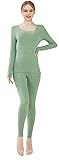 【 Double-sided Thermal Fleece 】 This womens thermal underwear set is made of 90% polyester and 10% spandex, it has ultra soft double sided fleece with super skin-touch feelings to keep you warm, comfortable and cosy the whole day. The color of the outer layer is different from the inner layer, the outer layer of our thermal underwear has five different colors, the inner layer is uniformly flesh-colored, which is closer to the skin color