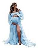Features:This maternity dress for photography is off shoulder,puffy long sleeve,A-line,slit,floor length and made of high-quality tulle. The maternity dress is perfect for pregnant mother who want a romantic and elegant atmosphere, the tulle is light and fluffy, perfect for a photo shoot!
