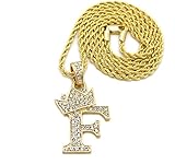 Fashion 21 Unisex Small Size Pave Crown Tilted Initial Alphabet Letter F Pendant Various Chain Necklace in Gold Tone (Gold - 3mm 20" Cuban Chain)