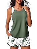 TWO PIECE SWIMSUIT: Tankini bathing suits with padded bras are comfortable to wear and provide great support. Swim shorts women have an elastic waistband that won't choke or itch, and the leg openings are soft and stretchy. Summer Mae swim suit for women 2025 is perfect for swimwear lovers.