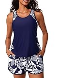 DESIGNED TANKINI TOP: U-neck swim tops have a loose fit that covers the tummy without restricting movement. The full coverage at the back of the women's swimsuits hides imperfections and enhances the body's curves, while the side print adds a unique and stylish touch. For added comfort, the top features removable padded cups.